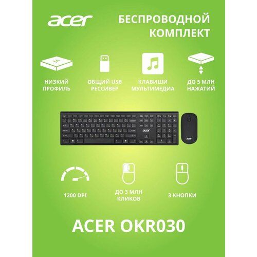 Клавиатура + мышь Acer OKR030 клав: черный мышь: черный USB беспроводная slim