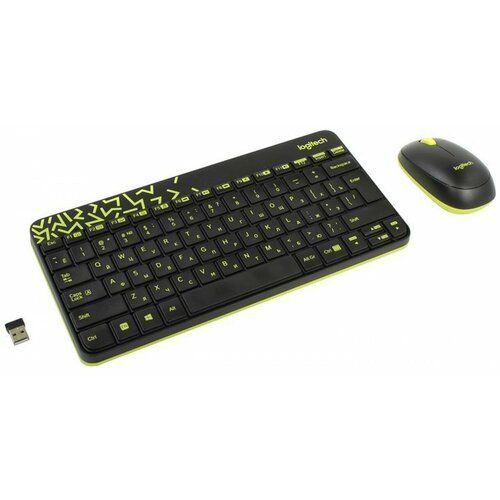 Найти - Комплект клавиатура + мышь Logitech MK240 Nano, black/yellow, английская/русская