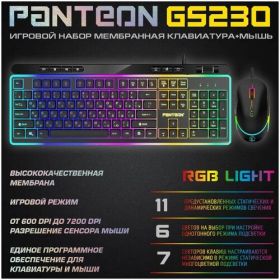 Найти - Игровой проводной набор с подсветкой PANTEON GS230 (мембранная клав. и мышь, программируемый), черный