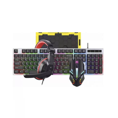 Игровой проводной набор AlterAcs KMHP001-GLC включает в себя все необходимое для комфортной игры: полноразмерную клавиатуру, оптическую мышь, наушники и коврик.