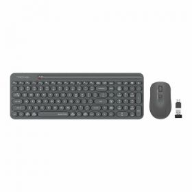 ? С функцией Air Mouse аксессуар превращается в мультимедийный контроллер. Описание ОсновныеТипофисный наборСостав набораклавиатура + мышьНазначениедля ПК, для компьютеров Apple Характеристики мышиИнтерфейс подключения мышибеспроводная радиоТип сенсора мышиоптическийМаксимальное разрешение сенсора мыши2 000 dpiИзменяемое разрешение сенсора мышиДа 1000, 1200, 1600, 2000Максимальная частота опроса мыши125 ГцКоличество кнопок мыши4Количество колес прокрутки1Тип колеса прокруткис нажатиемДополнительные кнопкисмена разрешенияМатериал корпуса мышипластикЦвет мышисерый, черныйПодсветка мышиНетПитание мыши1 x AAОсобенности мышитихий клик, функция Air MouseДлина мыши109 ммШирина мыши64 ммТолщина мыши36 мм Характеристики клавиатуры/кейпадаИнтерфейс подключения клавиатурыбеспроводная радиоТипоразмер клавиатурыполноразмернаяТехнология переключателя клавиатурымембраннаяФорма клавиш клавиатурыклассическая (высокие)Высота клавиши EnterодноэтажнаяКириллица (русская раскладка)даЦифровой блокДаПодставка под запястьеНетМатериал корпуса клавиатурыпластикЦвет корпуса клавиатурысерыйЦвет клавиш клавиатурысерыйПодсветка клавиатурыНетПитание клавиатуры1 x AAШирина клавиатуры395 ммГлубина клавиатуры138 ммТолщина клавиатуры27 мм КомплектацияПолная комплектация набора- беспроводная мышь