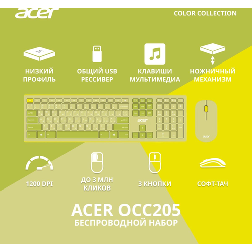 Найти - Клавиатура и мышь Acer OCC205 зеленый (ZL. ACCEE.00E)