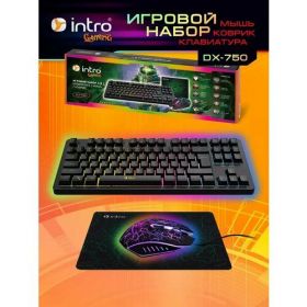 Найти - Игровой набор для пк Intro DX750 клавиатура и мышка для компьютера проводная + коврик для мышки, USB, 1200-3600dpi