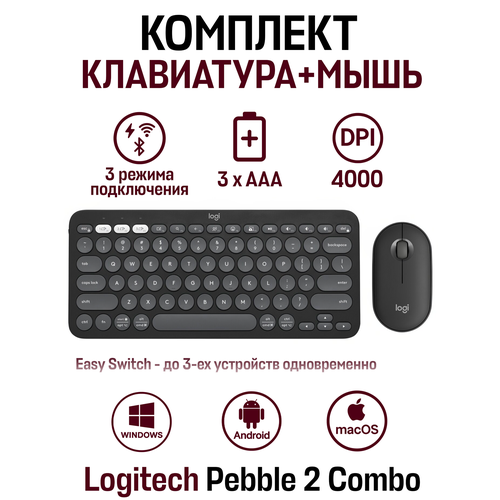 НАЙТИ ВЫГОДНЕЕ - Комплект: клавиатура+мышь Logitech Pebble 2 Combo черный, английский