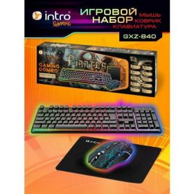 Найти - Игровой набор для пк Intro GXZ840 клавиатура и мышка для компьютера проводная + коврик для мышки, USB, 1200-3600dpi