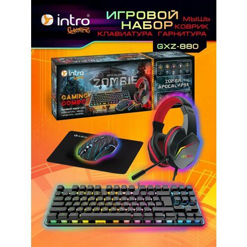 Найти - Игровой набор проводной Intro GXZ880 клавиатура + мышь + гарнитура + коврик