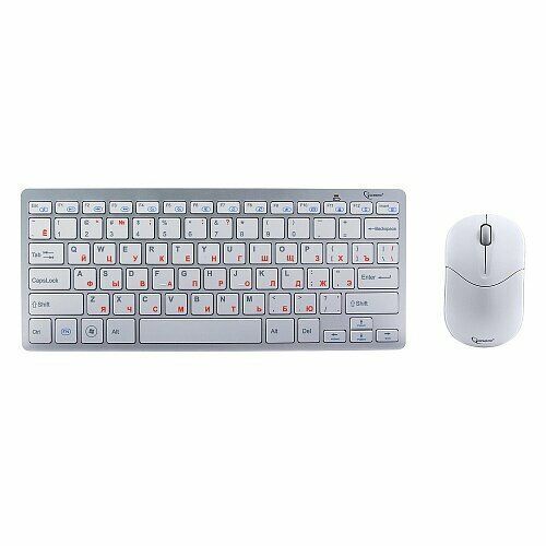 Gembird KBS-7001 - беспроводной комплект серебристо-белого цвета, состоящий из компактной клавиатуры и мыши