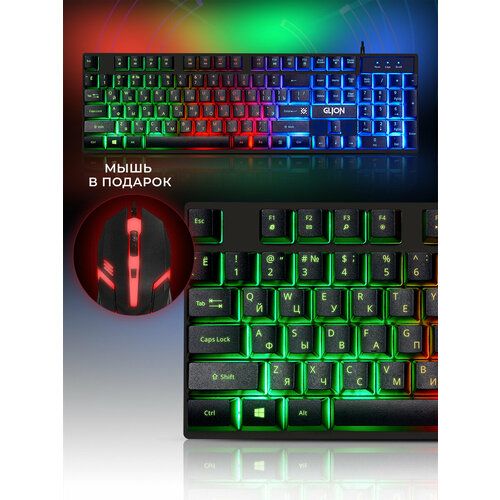 Найти - Комплект клавиатура + мышь Defender Glion C-123, черный/зеленый, английская/русская