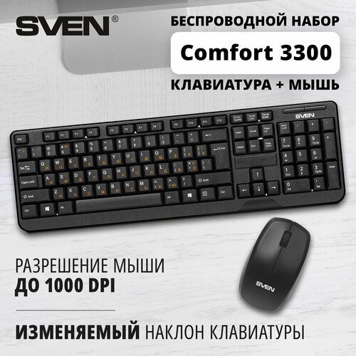 Найти - Комплект клавиатура + мышь SVEN Comfort 3300 Wireless Black USB, черный, английская/русская