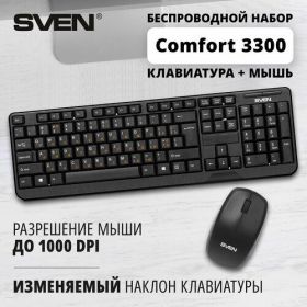 Комплект клавиатура + мышь SVEN Comfort 3300 Wireless Black USB, черный, английская/русская
