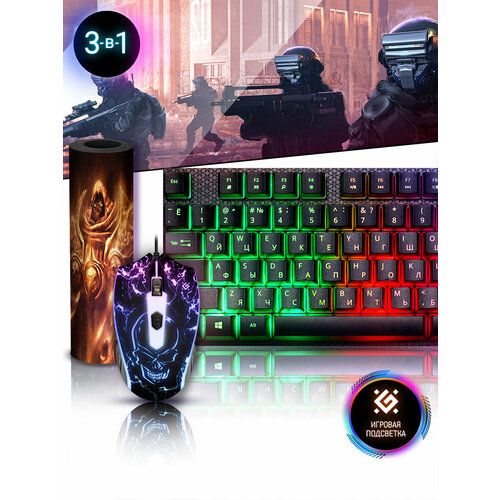 Комплект клавиатура + мышь + ковер Defender "Aura MKP-117" 52117, подсветка (USB) (ret)