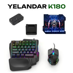 Найти - Игровой набор для телефона 5 в 1 YELANDAR K180 / Клавиатура + Мышка + Коврик + Конвертер для смартфона + Подставка