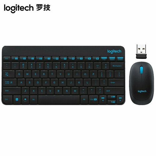 Комплект беспроводной клавиатуры и мыши Logitech MK240 предназначен для использования с ноутбуком и выполнен в классическом черном цвете.