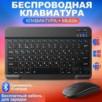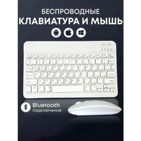 Найти - Мини клавиатура и мышь, беспроводная клавиатура и мышь, для компьютера, для планшета, комплект 2 в 1, bluetooth, русская раскладка, белый
