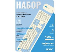 Комплект (клавиатура+мышь) Acer OCC205, USB, беспроводной, бежевый [zl. accee.00f] 102895157785