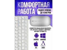 Клавиатура и мышь беспроводная, Type-C, силиконовая накладка, серебристый цвет 4336416483