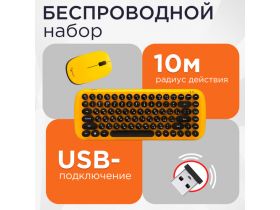 Беспроводной комплект клавиатуры и мыши со сменным разрешением до 1000 dpi, ретро-дизайн, лазерная гравировка клавиш, режим экономии энергии Gembird 101204971732