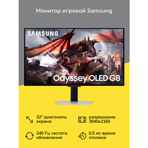 Игровой монитор Samsung S32DG800SI с экраном 32" и разрешением 3840x2160 пикс (4K UHD) передает яркую детализированную картинку.
