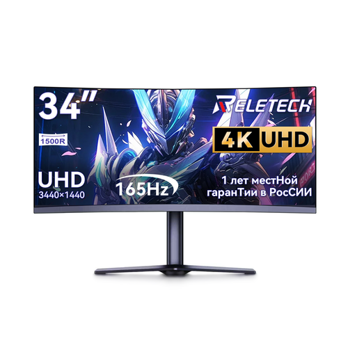 Найти - Монитор Reletech G34WQ, 34, игровой, изогнутый, разрешение 21: 9,3440x1440, 165 Гц, HDMIx2, DPx2, 1500R, 85% sRGB