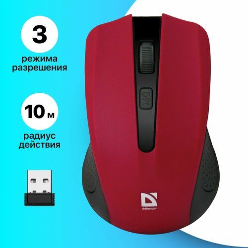 Беспроводная оптическая мышь Defender Accura MM-935 красная с радиусом действия до 10 метров: