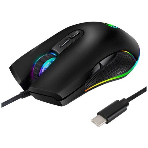 Игровая оптическая с LED подсветкой проводная мышь с выходом Type- C 800/3200 dpi черная MyPads