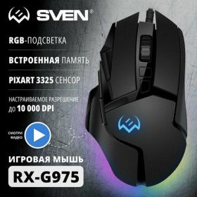 Одного взгляда на игровую мышь SVEN RX-G975 достаточно, чтобы понять: перед нами флагман линейки геймерской периферии от финского производителя. Ее агрессивный дизайн с резкими гранями и настраиваемая подсветка, поддерживающая 16,8 миллиона цветов, сразу приковывают к себе внимание. При этом форма мыши сделана максимально эргономичной, позволяя манипулятору плотно и комфортно ложиться в руку киберспортсмена. Материал корпуса способен выдержать повышенные нагрузки во время виртуальных сражений, а кабель в защитной тканевой оплетке не только практически не запутывается, но и максимально долговечен. Но внешний вид — это далеко не самое интересное. Внутри SVEN RX-G975 размещен передовой игровой сенсор PIXART 3325, позволяющий настраивать разрешение в широком диапазоне — от минимальных 200 до невероятных 10 000 DPI. Этого точно хватит, чтобы подобрать комфортное сочетание скорости и точности управления к любой игре и любому монитору. А заодно поможет организовать эффективную работу в различных приложениях и пригодится при переходе от монтажа видео к редактированию текстов или от обработки изображений к интернет-серфингу. Специальное ПО позволяет не только изменять подсветку, но и программировать поведение кнопок, получая быстрый и легкий доступ к самым важным элементам управления играми. Отдельного упоминания достойна кнопка двойного клика, которая пригодится и в работе, но весь свой потенциал раскрывает в шутерах, давая геймеру ощутимое преимущество. SVEN RX-G975 – это настоящий «игровой монстр», способный подарить новый уровень комфорта и эффективности гейминга широкому кругу киберспортсменов, в том числе – и начинающих, которые пока не готовы серьезно инвестировать в периферию.