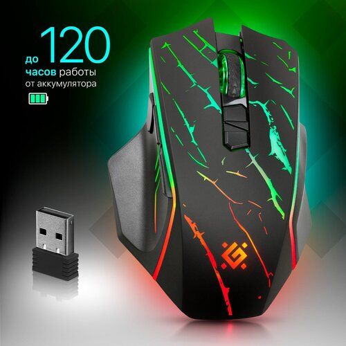 Беспроводная игровая мышь Defender Uran GM-503 черный, LED,8D,400 мАч,3200dpi: