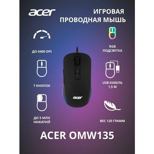 Найти - Мышь проводная Acer OMW135 черный (ZL. MCEEE.019)