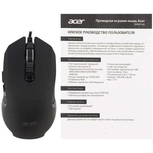 Найти - Мышь компьютерная Acer OMW160 black (6400dpi) USB(ZL. MCEEE.00Q)