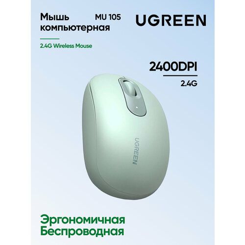 Найти - Беспроводная компьютерная мышь UGREEN MU105 (90672) 2.4G Wireless Mouse. Цвет: серовато-зеленый