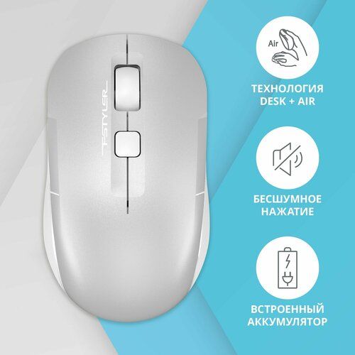 Найти - Мышь A4Tech Fstyler FB26CS Air серебристый/белый оптическая (2000dpi) silent беспроводная BT/Radio USB для ноутбука (4but)