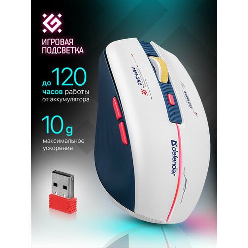 Найти - Беспроводная игровая мышь Dila MM-282 бел+син, LED,6D,2.4,1600dpi