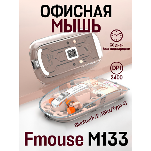 Найти - Прозрачная офисная беспроводная мышь FMouse M133 радиоканал/Bluetooth, прозрачный, персиковый