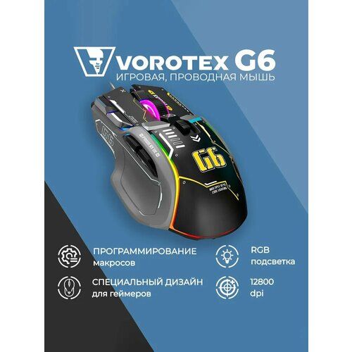 Игровая мышь VOROTEX G6 - это проводное устройство, которое обеспечивает точное и плавное управление.