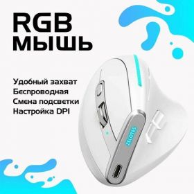 Найти - Вертикальная мышь беспроводная, ZELOTES F36, перезаряжаемая, с подсветкой RGB, для компьютера, белая