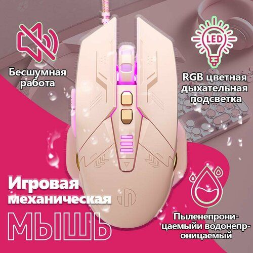 Найти - Проводная игровая бесшумная мышь Inphic PW5 , бесшумными кнопками и RGB подсветкой, Игровая компьютерная мышь , бежевый