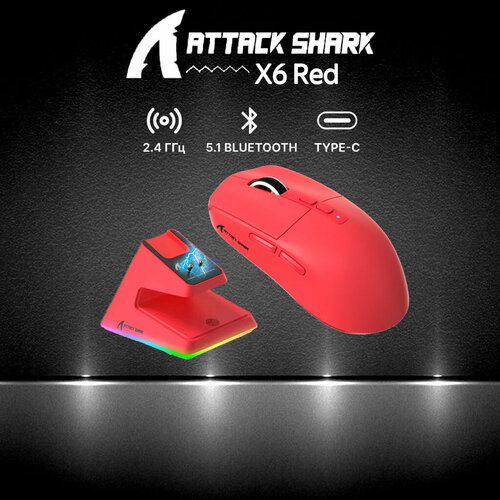 Найти - Игровая мышь Attack Shark X6 Red красный USB, Радиоканал, Bluetooth