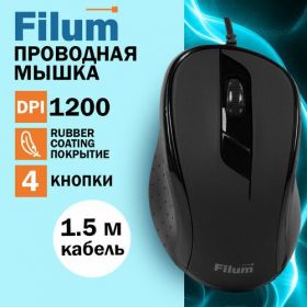 Найти - Мышь проводная Filum FL-M30-BK оптическая USB 4 кнопки, чёрный