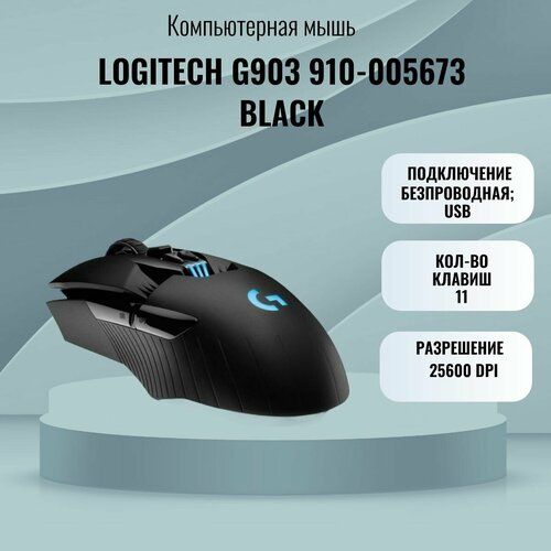 **Мышь игровая Logitech G903 Lightspeed Hero** — это беспроводная мышь с высокой чувствительностью и точностью, предназначенная для игр. Она имеет следующие характеристики: