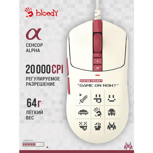 Найти - Мышь A4TECH Bloody W72 Ultra Pixels Red, игровая, оптическая, проводная, рисунок и бежевый