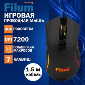 Найти - Мышь проводная Filum FL-GM20 игровая 7D, оптическая, подсветка RGB, 7 кнопок, чёрный