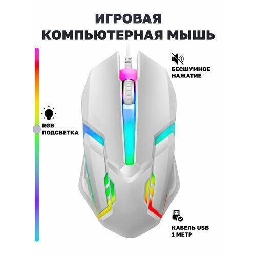 Найти - Проводная игровая мышь X1. Компьютерная мышь оптическая с RGB подсветкой. Белый
