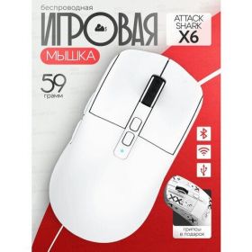 Игровая беспроводная мышь со встроенной подсветкой и аккумулятором от Attack Shark X6 PAW 3395 - это высокотехнологичный компьютерный аксессуар, который обеспечивает безупречную работу и максимальный комфорт. При помощи регулировки режима dpi (от 400 до 26000), Вы можете выбрать комфортную чувствительность. Аккумуляторная мышка имеет оптический модуль PAW3395, благодаря которому она работает точно и плавно, подключается к компьютеру или ноутбуку через USB-адаптер (2.4 Ггц), bluetooth и провод. Так же она имеет встроенный аккумулятор, который освобождает от необходимости подзарядки до нескольких недель, что позволяет ей быть идеальным решением для эксплуатации в дороге или путешествии и позволит забыть о батарейках. Мышь выполнена в строгом сдержанном стиле, что делает ее привлекательной для использования в офисе или дома. Девайс будет прекрасно сочетаться с большинством клавиатур, ковриков и мониторов и станет прекрасным подарком на день рождения (др), новый год (нг), 23 февраля, 8 марта для девушки, подруги, парня или ребенка. Игровая мышь также обладает рядом других высокотехнологичных функций, которые делают ее идеальным выбором для игроков, профессионалов и новичков. Она игровая и эргономичная, что обеспечивает максимальный комфорт при ее использовании. Ее кнопки обладает высокой чувствительностью и быстрым откликом, что увеличивает точность передвижения курсора. Девайс подходит для всех ноутбуков и компов с операционной системой: Windows, mac ios (для macbook/макбук/мак) или андроид (Android). Она приведет в восторг всех, кто ищет качественные и удобные аксессуары и компьютерную периферию для своих устройств. Лазерная заряжаемая led мышка с блютуз и юсб адаптером обладает относительно низким уровнем шума при нажатии на клавиши. Все эти качества позволяют attack shark x6 конкурировать с известными брендами, и не уступать тому же Xiaomi (Mi), Logitech, Razer, Cougar, при этом предлагая товар по более дешевым ценам.
