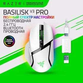 Найти - Игровая мышь Razer Basilisk V3 Pro (White) Беспроводная и Проводная, 30.000 DPI, 11 кнопок, умное колесо прокрутки, память, подсветка RGB