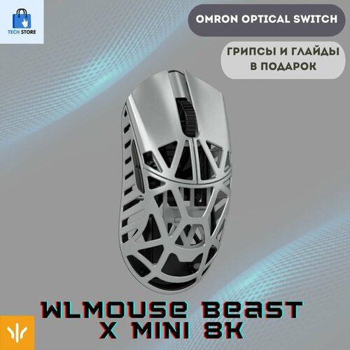 Найти - Игровая мышь WLmouse Beast X Mini 8K, 8000 Гц, 34 г, серебристая, переключатели OMRON оптические