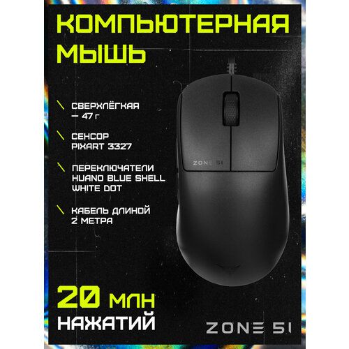 ZONE 51 Sage весит всего 47 грамм, что позволяет снизить инерцию при резком движении до минимума, делая контроль мыши более предсказуемым.