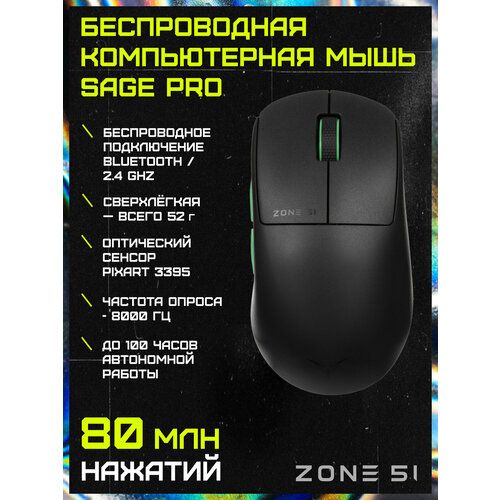 ZONE 51 Sage Pro весит всего 53 грамма, что позволяет снизить инерцию при резком движении до минимума, делая контроль мыши более предсказуемым.