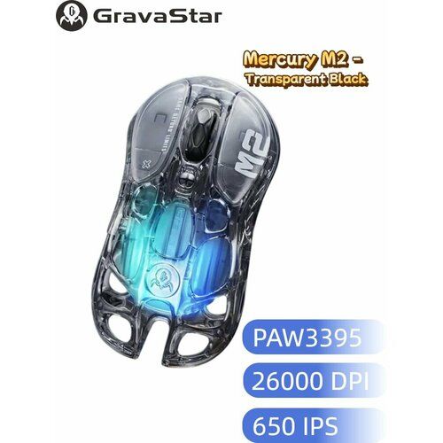 Найти - Gravastar Игровая мышь беспроводная GravaStar Mercury M2 - Игровая Мышь, 26000 DPI, PAW3395, Bluetooth/Wi-Fi/Проводное Подключение, RGB Подсветка