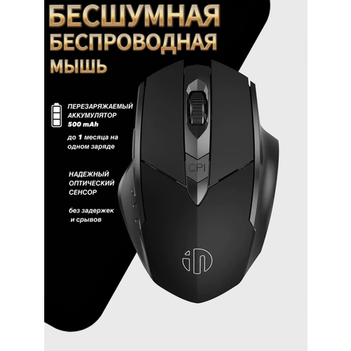 Найти - Мышь беспроводная бесшумная игровая, с аккумулятором, цвет черный.