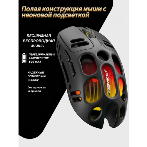 Найти - Мышь беспроводная бесшумная игровая, с аккумулятором, неоновой подсветкой FOREV FV-S220 цвет черный.